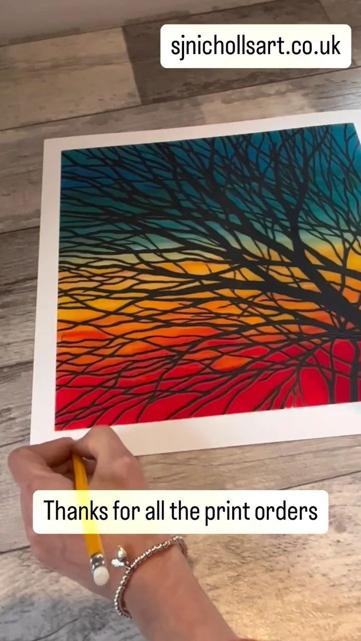 Since moving to Yorkshire from London in 2008 I have been so inspired by the Yorkshire countryside, particularly how the colours and textures of the trees change throughout the year. Painting trees and landscapes is one of my main passions, although I have recently worked on a series of paintings and commissions of bright colourful abstracts on glass which I loved.