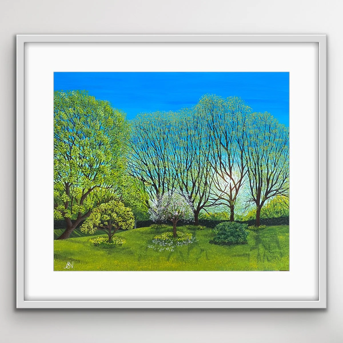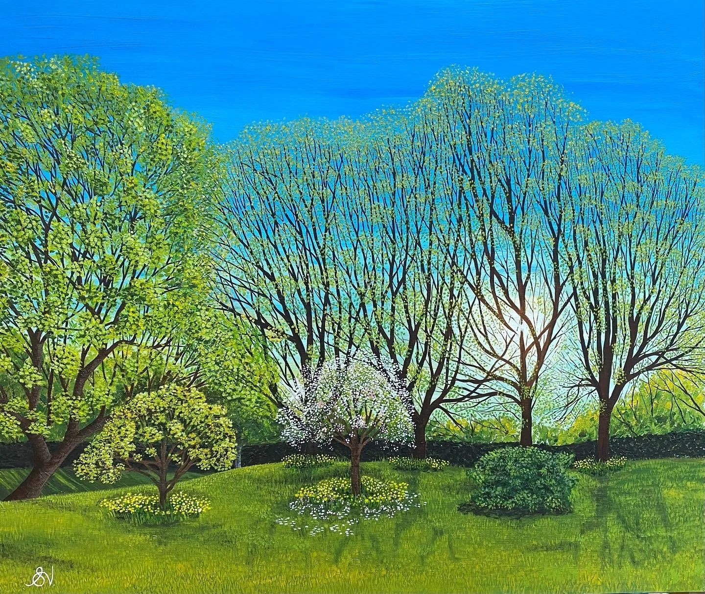 I’ve painted some beautiful gardens and this one was no exception. My clients wanted to have the sunlight bursting through the trees and picked the colours to compliment an existing original painting that was going in the same room.